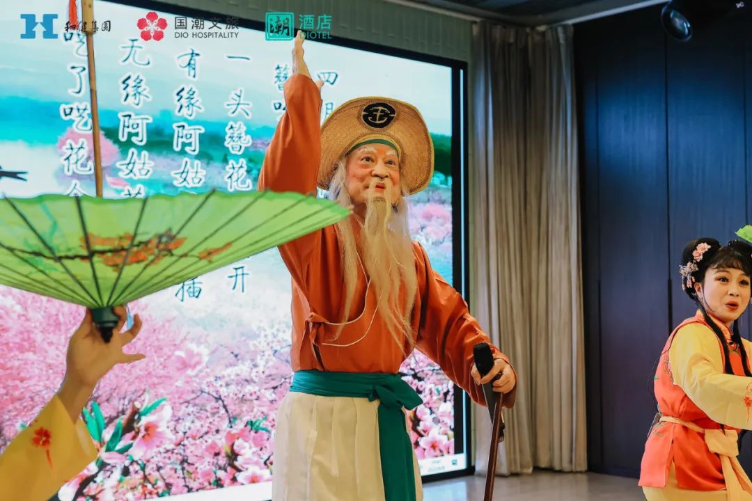 晚上20点30分,著名潮剧表演大师、国家一级演员、第二批国家级非物质文化遗产项目(潮剧)代表性传承人方展荣老师在【塔台·潮艺坊】进行了脍炙人口的潮剧选段表演。方展荣老师精湛的演出,不仅让宾客感受到潮剧特有的魅力,更展现了“保护国粹,从保护方言俗语开始”的远大胸怀,与DIOTEL潮酒店弘扬国粹经典的运营理念相得益彰。